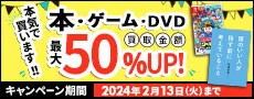 お申し込み時の買取金額を保証! 買取強化!初めての方書籍最大50%UP!ゲームソフト、DVDは買取金額最大20%UP!