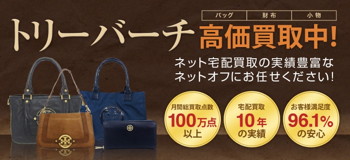 ネットオフでも、バッグ・財布・小物どのモデル、ライン問わず、トリーバーチ製品を高価買取しています。トリーバーチをお売りになる際には、柔らかい布で表面を乾拭きする、バッグの底やポケットなどゴミが溜まりやすい箇所をチェックする、ご購入した際のブランドタグ、保証書などの付属品があると、さらに高価買取をさせていただいております。