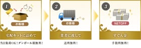 送料・手数料・査定料・振込手数料・キャンセル料・返送料すべて0円!査定額にご納得いただけなかった場合はネットオフが返送料を全額負担します。