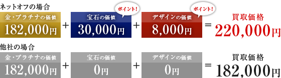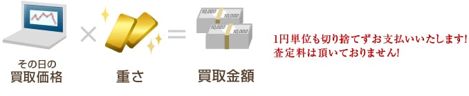 他の金・プラチナの買取店では、グラム査定から10円以下、100円以下の金額を切り捨てでお支払いするところがありますが、