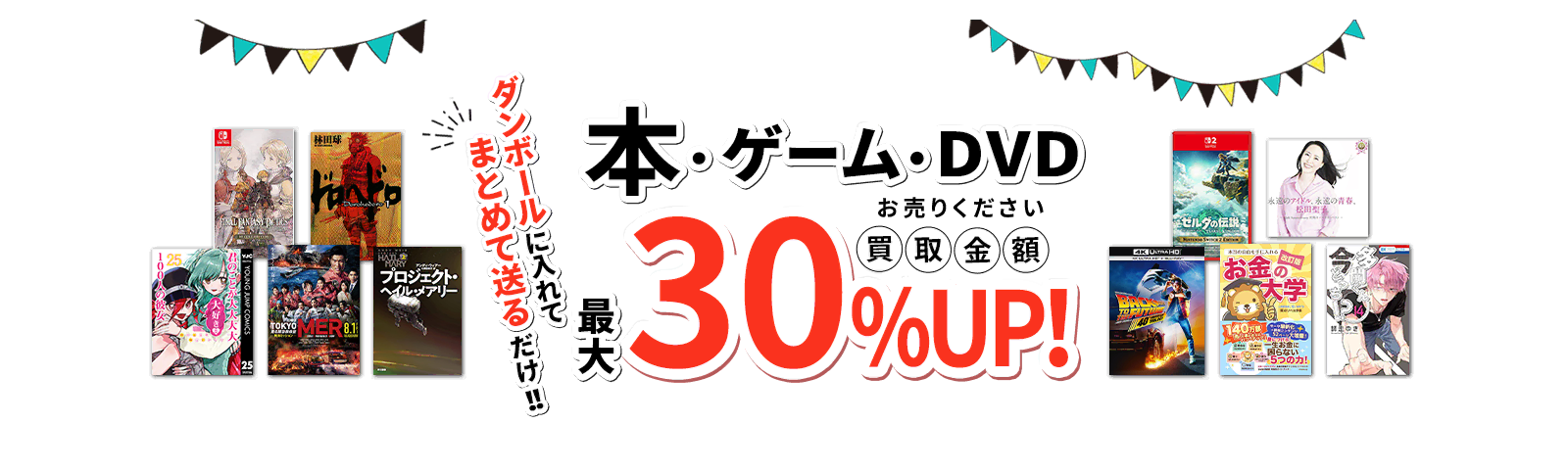 | 特典 | 【特典1】買取金額現金で書籍30%UP、ゲームソフト30%UP、DVD・Blu-ray20%UP! 【特典2】通常30点からの本&ゲーム買取コースが10点からお申し込み可能。ソフト類(DVD、CD、ゲームソフト)は3点から、ゲーム機は1点からOK。 |
