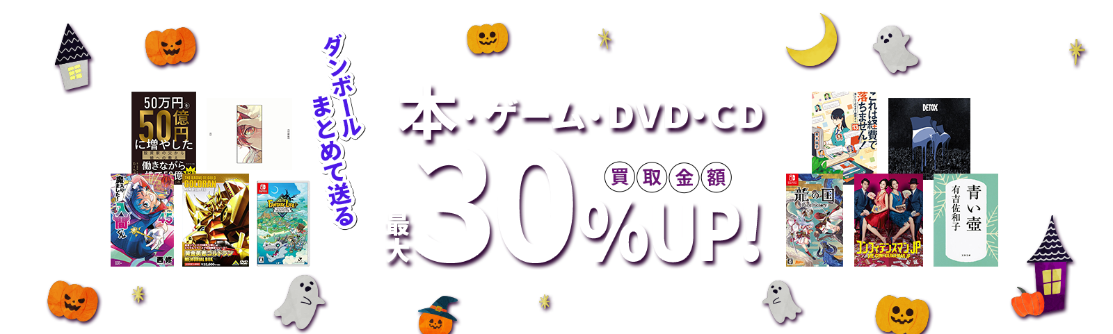| 特典 | 【特典1】買取金額現金で書籍30%UP、ゲームソフト30%UP、DVD・Blu-ray20%UP! 【特典2】通常30点からの本&ゲーム買取コースが10点からお申し込み可能。ソフト類(DVD、CD、ゲームソフト)は3点からOK。 |