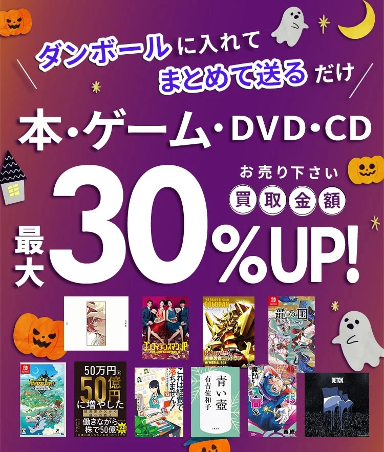 ※その他の買取クーポン・キャンペーンとの併用は出来ません。 「買取金額39円以下の商品」「【新品価格の80%】で買取中の商品」「写真集」「コミック」「CD」は対象外となります。 ※「ポストにポン買取」のお申し込みは、本キャンペーンの対象外となります。 |