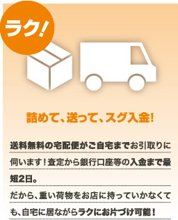 近くのリサイクルショップで売るより買取価格が高かったのはもちろん、自宅ですべての手続きが完了する便利さに驚きました! このサービスはオススメです!