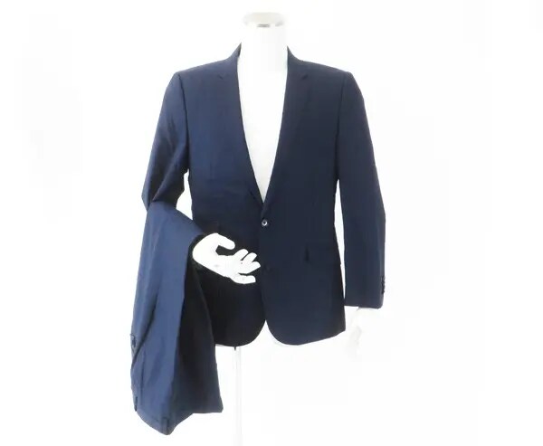 クラシカルなナポレオン風デザインにモダンなエッセンスが加わった一着で、上質なウール混素材とネイビーのシックな色味が魅力です。
