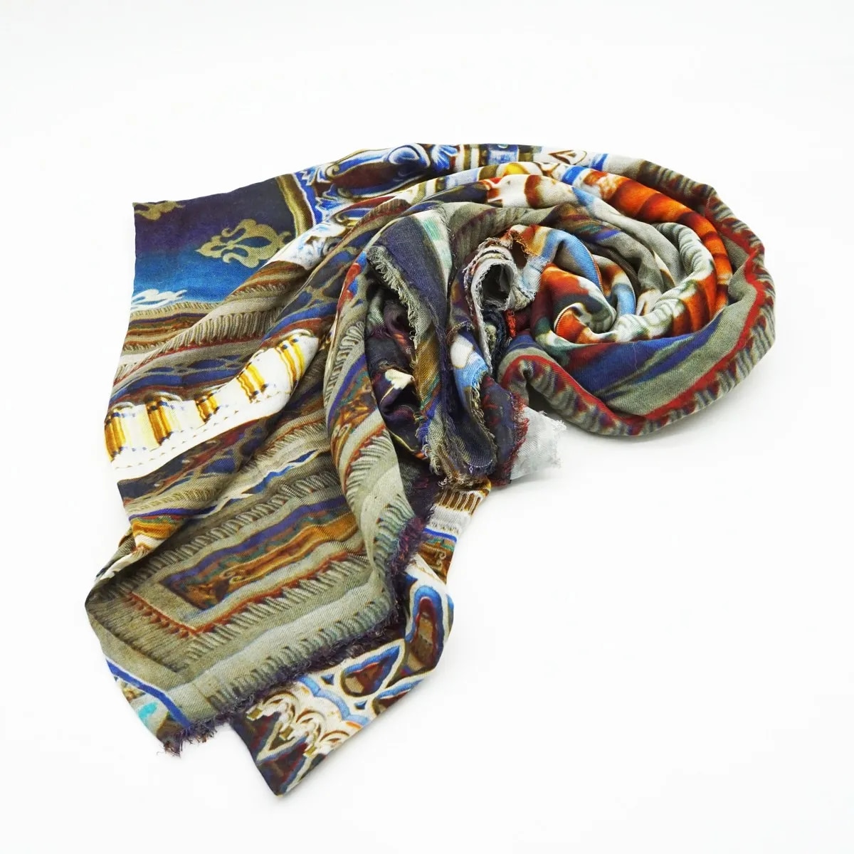 ブルー系の美しいグラデーションカラーが上品なアクセントとなり、シンプルな装いにも華やかさをプラスしてくれる一品です。