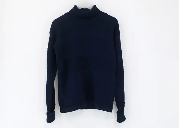 ネイビーの落ち着いた色合いがどんなスタイルにもなじみやすく、上質なコットンやウールを使用した丁寧な縫製がブランドのこだわりを感じさせます。