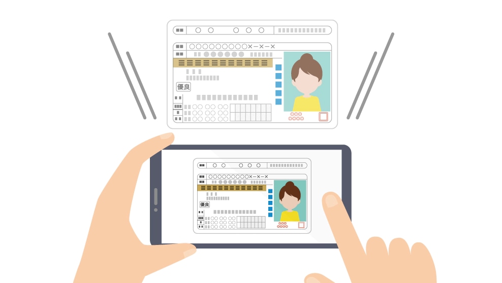 スマートフォンで運転免許証を撮影するオンライン本人確認コンビニ持ち込みの場合や集荷先住所がご自宅と異なる場合でも、確認はがきの受取連絡手続きが不要なため大変便利です!