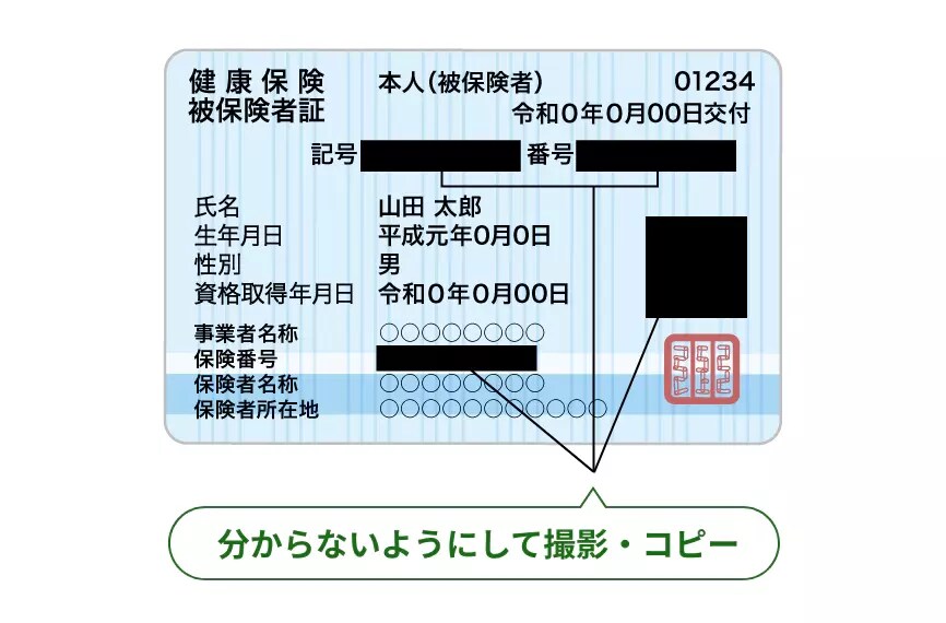 - 被保険者記号・番号をわからないようにして撮影を行ってください。(※上に紙を置いて撮影するなど)