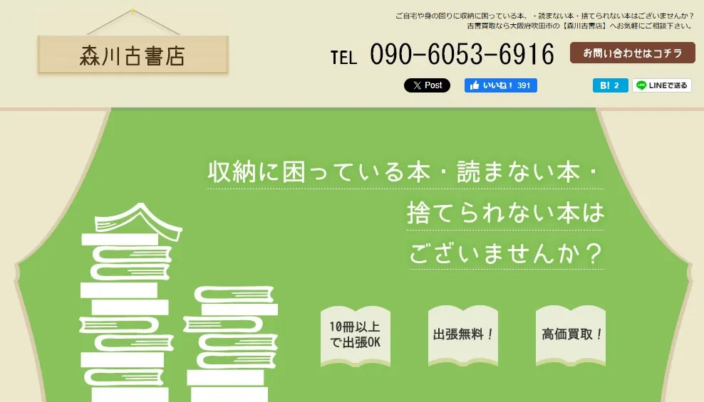 | 森川古書店 | 店頭買取 出張買取 宅配買取 | 無料 | 自己負担 | |