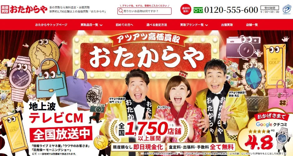| おたからや | 店頭査定 出張査定 | 全国 | – | – | キズや汚れがあっても査定対象になる | |