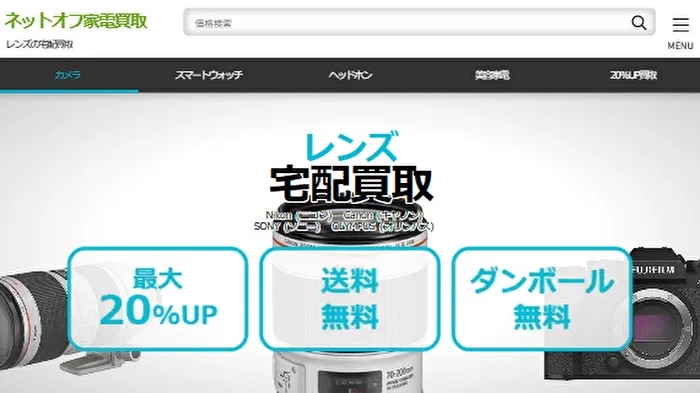 ネットオフは、カメラレンズを1点からでも査定に出せる宅配買取サービスです。使わなくなった交換レンズやカメラ周辺機器を、自宅からまとめて送って査定してもらえます。