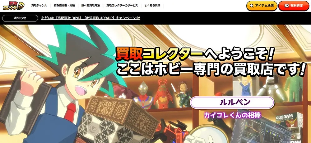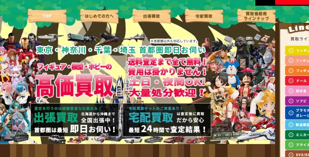 ホビーコレクトは、出張買取と宅配買取の両方に対応しているおもちゃ買取専門サービスです。