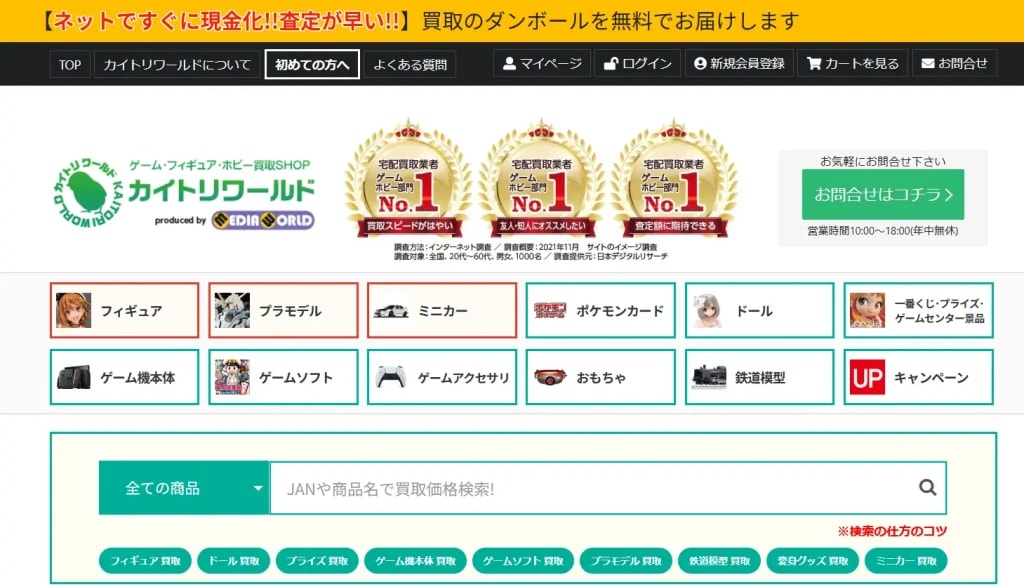 | カイトリワールド | 宅配 | 一部例外あり | WEB | 2日以内 | 1日以内 | 価格保証つきでじっくり派に◎ カートに入れるだけで事前査定がわかる | |||||