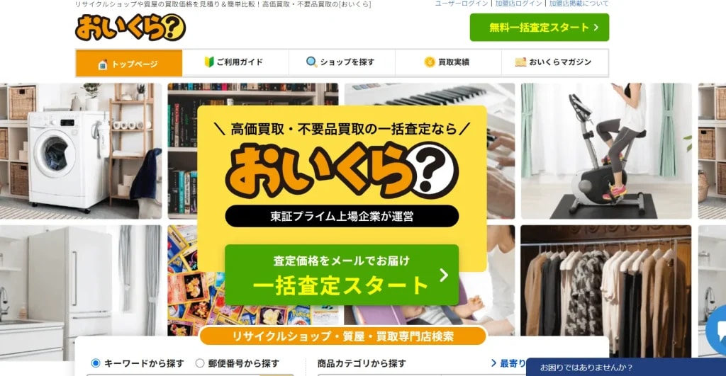 | おいくら | 出張/宅配/店頭 | 利用業者による | 利用業者による | 利用業者による | WEB | 利用業者による | 利用業者による | 利用業者による | 利用業者による | 利用業者による | 一括査定で比較がカンタン!地域に合った業者をまとめて探せる |