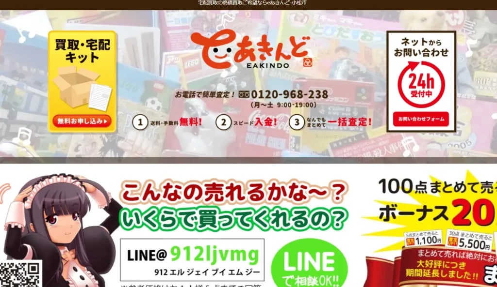 | eあきんど | 宅配 | WEB/電話/LINE | 3日以内 | 3日以内 | LINE査定対応&断られた品もOKの柔軟対応。リピーター多数で安心感あり | ||||||