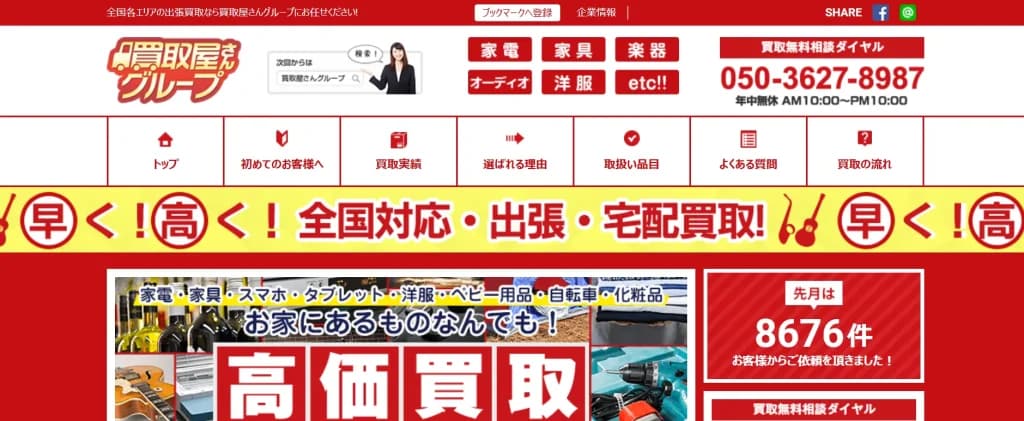 独自の海外輸出ルートをもっているため、不要な家電を相場以上の価格で査定してくれるのが強みです。