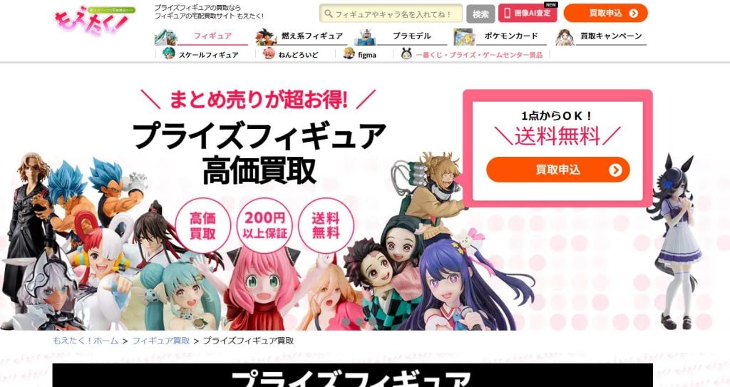 一番くじやプライズフィギュアの買取に力を入れており、以下の原作シリーズに該当し、なおかつ全高20cm以上の高さのフィギュアは200円の買取保証を行っています。