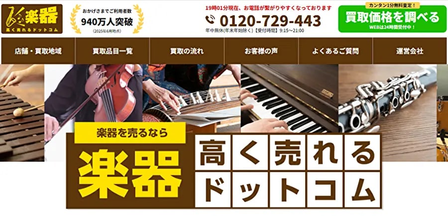 楽器高く売れるドットコムは、東証プライム上場企業が運営する全国対応の総合楽器買取サービスです。