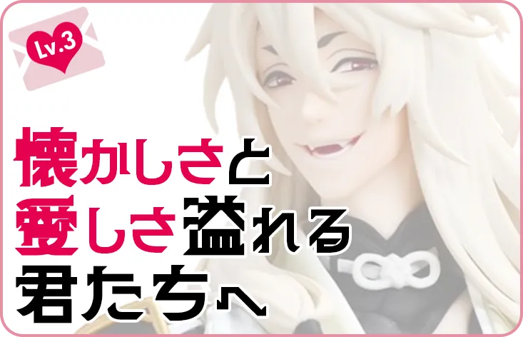 アニメを見進めていくうちに来栖翔くんというキャラクターに出会いました。可愛かっこいい容姿に、低身長という可愛らしさにまず惹かれました。翔くんのことを知っていくうちに、あなたの笑顔が、元気という概念を表すような明るくて真っ直ぐな歌声がどんどん大好きになっていきました。 翔くんと出会った当時の私は、今思い返しても人生で1番辛かった時期で家庭内の問題で気持ちが沈んでしまうような日々が続いていました。 そんな私にとって翔くんは太陽のような存在でした。明るいソロ曲が多く、どんな時も気持ちを歌に変えて前に進もうとするところや、自分のことを信じて1歩を踏み出していく意志の強さに明日も生きてみようと勇気を力を貰えました。私がそういった暗黒のような時に、中々前に進む気持ちになれないからこそ、前に進もうとする翔くんの姿に救われました。翔くんは持病を患っているというお話も見て、そのような中でも沢山の人を笑顔に出来るような太陽のような笑顔と夢であるアイドルになる為に真っ直ぐ努力し続ける姿勢に胸を打たれました。 当時辛すぎて感情を無くしていた私にとって、翔くんに出会えて何度あなたの笑顔に歌声に何度元気づけられたことか数え切れません。翔くんのおかげであの時の辛い時期を乗り越えることが出来ました。今は感情を取り戻し笑顔になることが増えていて、今笑顔になれているのは翔くんのおかげと言っても過言ではありません。 今でも泣き出してしまいそうになる時には、翔くんの歌声を聞いています。聞いているうちに元気を貰え笑顔になり、気づけば自然と前向きな気持ちに戻れています。 翔くんのフィギュアと出会った日のことは今でもよく覚えています。今から8年前の学生時代、母がクリスマスプレゼントとしてサプライズで贈りものとして頂きました。私にとって初めてのフィギュアで、フィギュアでも変わらず太陽のように輝く笑顔でより好きになりました。 1回1回見る度に翔くんにつられ、私も笑顔になれました。窓辺に飾っていたのですが、夕日をバックによりあなたの笑顔が輝いて見えてまさしく私の太陽でした。泣いていたあの日々もどんな時も翔くんが窓辺からずっと見守ってくれたおかげで、笑顔を見る度に元気を貰えました。 誰にも言えなくて抱え込んでいた苦しい気持ちも、翔くんにたまにお話して心が軽くなれていました。学生証の裏に翔くんのトレカを挟みお守りにして、日常生活だけでなく学校生活でも支えられていました。 翔くん、8年間ずっと一緒にいてくれて見守ってくれてありがとう。私にとって初めての推しという存在で、オタクという1つの幸せを見出してくれてありがとう。どん底の色のない人生から毎日を沢山の色で色付けてくれて本当に本当にありがとう。 翔くんと過ごした日々は、毎日が輝いていて初めてのことがいっぱいで新鮮で私にとっての青春です。プリンセスにしてくれて、沢山の幸せを笑顔をくれて、暖かい気持ちを心に宿してくれてありがとう。 今回お部屋を整頓している中で惜しくも送り出すことに決めました。今は日の当たらない場所に閉まっていて、見る度に笑顔を頂いているけれど、もっと大切にしてくれるプリンセスに送り出した方が翔くんが幸せだからと感じたからです。 私にとって翔くんは笑顔をくれた存在で、今でも元気の源でどんな方よりも男気が溢れていて世界で1番かっこいいプリンスです。あなたと出会うことが出来て心の底から幸せです。次に出会うプリンセスのことも、沢山笑顔に幸せにしてあげてくださいね。翔くんの幸せを心から願っています。 もえたく様} 今回初めて利用させて頂きます。もえたく様が愛情買取という素敵な買取をなさっているというお話を耳にして、思い出が詰まっているフィギュア達を送り出すことに決めました。 拙い文章ですが、今回お送りさせて頂きます。文章を書くことが苦手でギリギリまで書くか悩んだのですが、送り出す最後の時に翔くんと向き合うことが出来て心から良かったです。 このような機会を頂けたこと心から感謝致します。次のプリンセスと審神者に出会うまでの間、翔くんと膝丸のことをどうか宜しくお願い致します。 【×】CLOSE