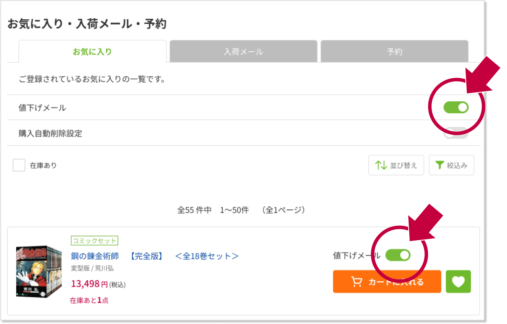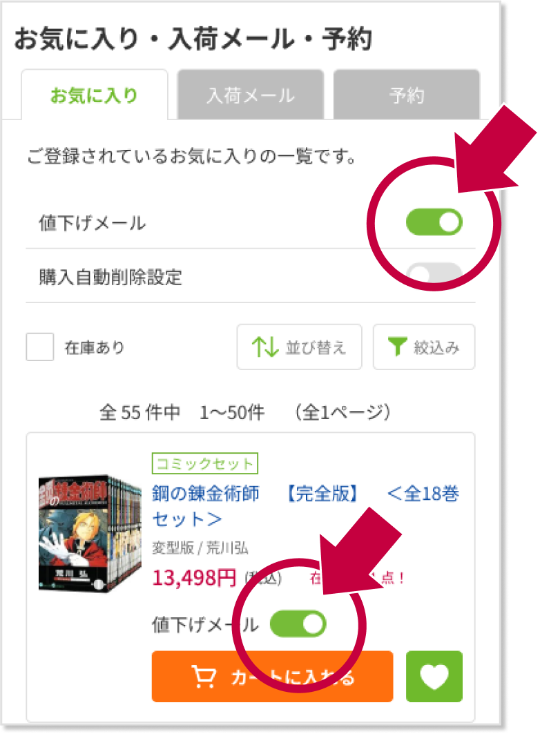 ぜひ値下げメールを有効にご活用ください!